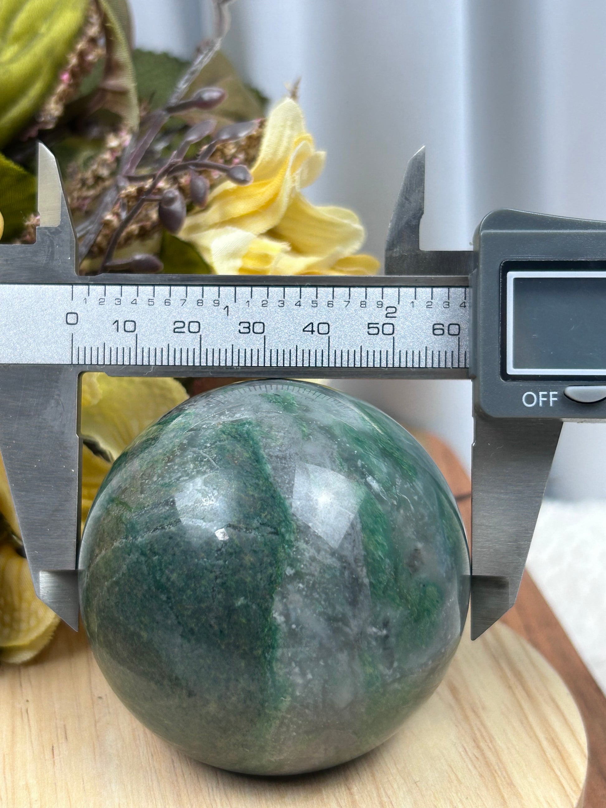 Invite the calming embrace of nature into your sacred space with this stunning Green Garden Quartz Sphere. Each piece is a miniature world—lush, mossy inclusions suspended in clear quartz like a forest preserved in time. Perfect for altar work, manifestation, meditation, or simply grounding the energy of a room.
