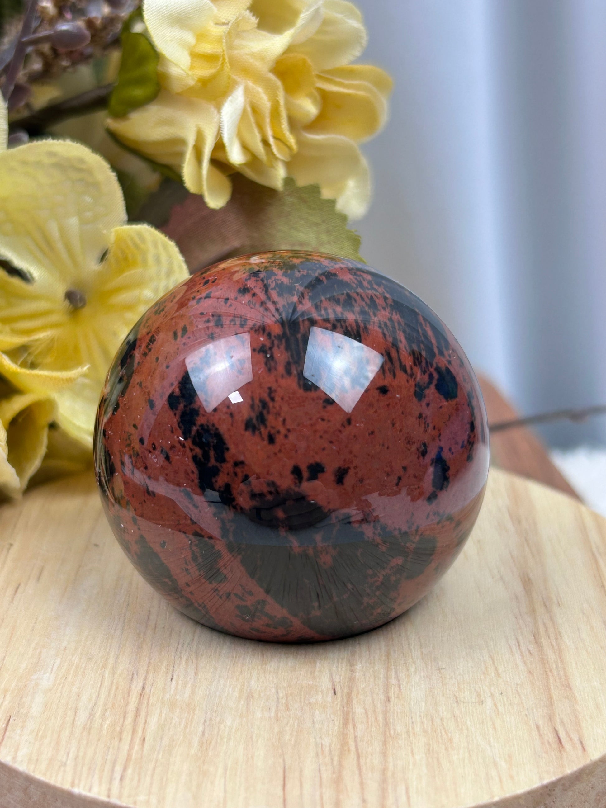 Ground your energy and ignite your inner power with this bold and beautifully patterned Mahogany Obsidian Sphere. Featuring deep brick-red swirls dancing through volcanic black, each sphere embodies ancient fire energy forged within the Earth. A strong companion for protection, empowerment, and transformation.