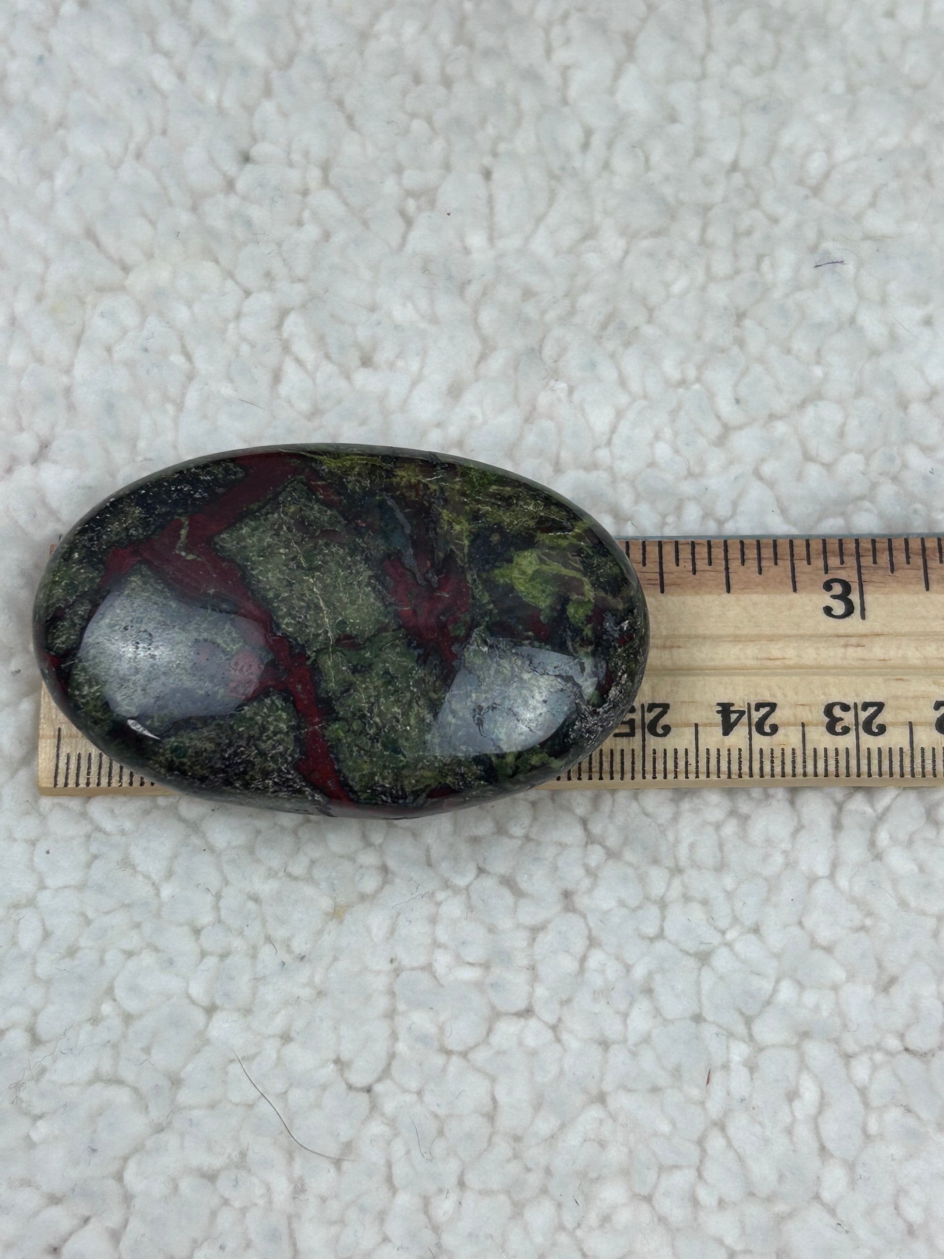 This Dragon’s Blood Palm Stone carries fierce, ancient energy—blending deep forest green with bold veins of crimson. Often associated with strength, vitality, and protection, Dragon’s Blood is a stone of inner fire, awakening courage and fortifying the spirit during times of challenge or transformation.