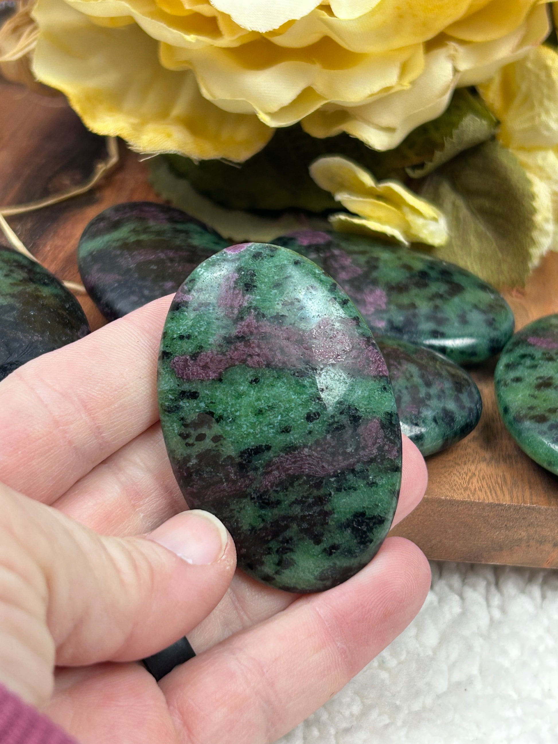 One (1) Ruby Zoisite Palm Stone - Intuitively Chosen