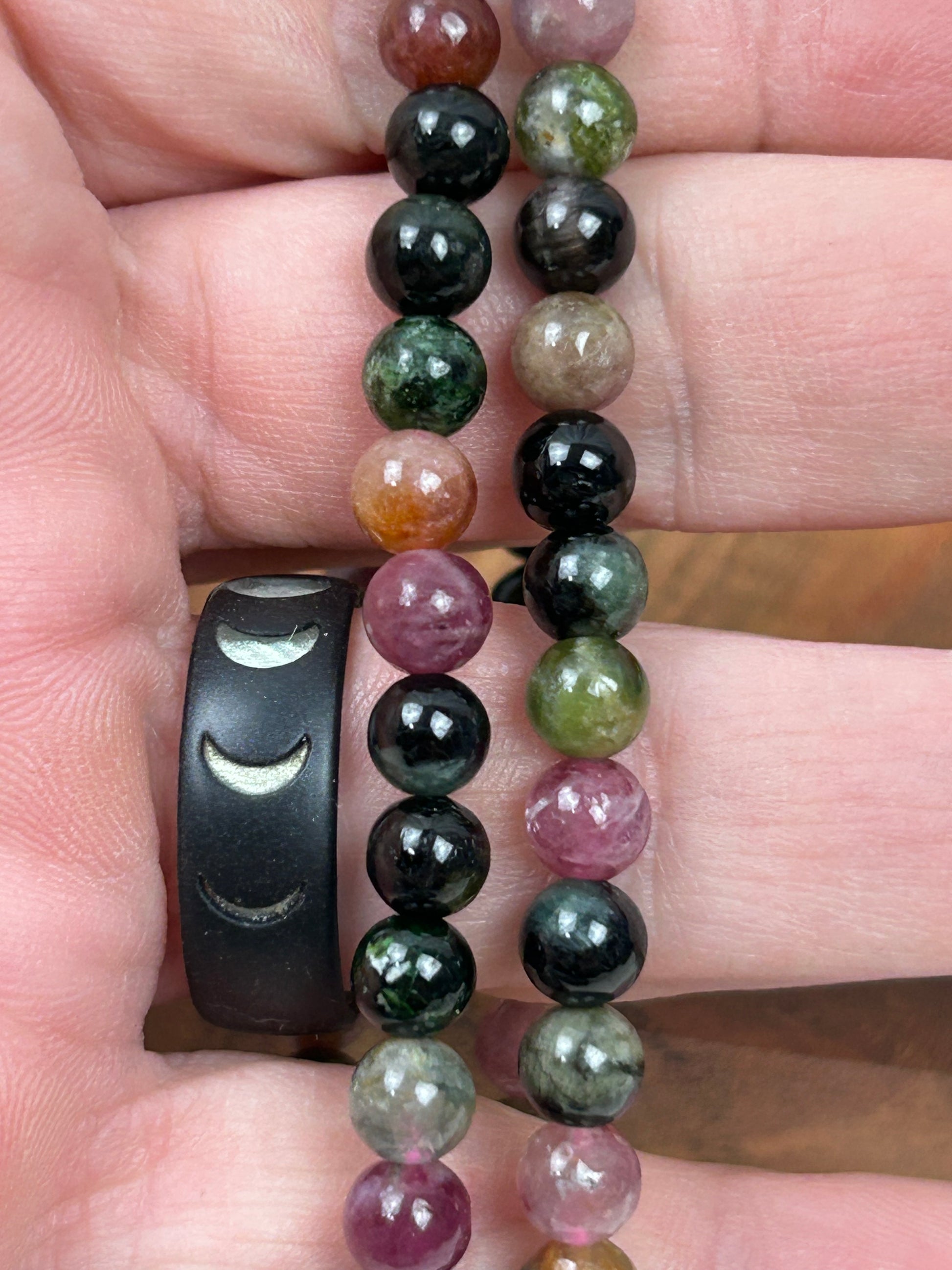 Multi-color tourmaline is prized in witchcraft for its ability to harmonize opposing energies, making it a potent ally for shadow work, emotional alchemy, and spiritual balance. Each bead carries a different frequency, working together to create a shielded yet open energetic state.